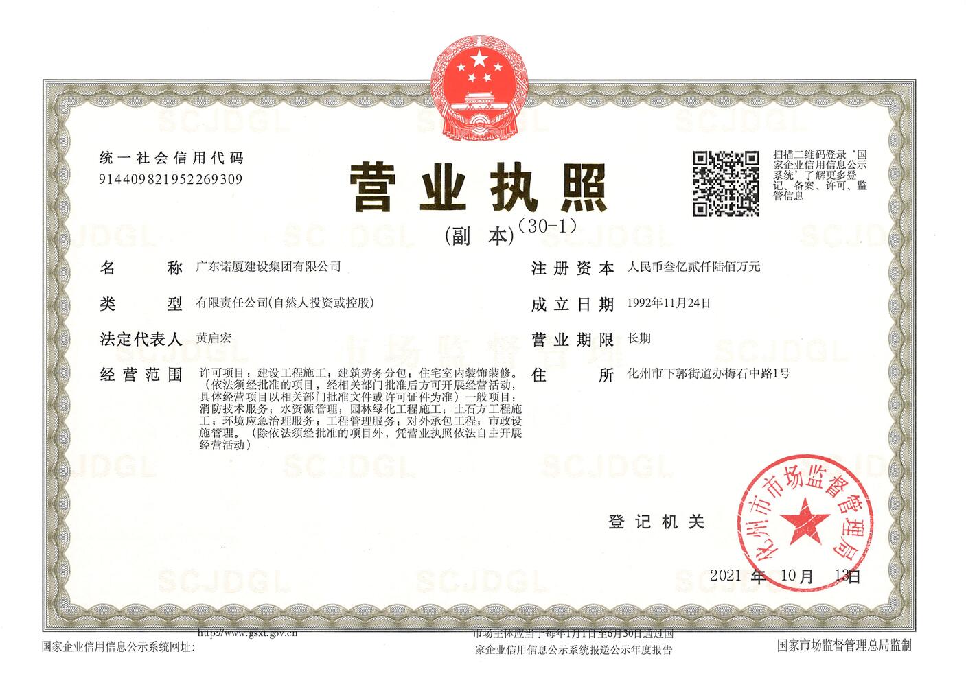 廣東諾廈建設集團有限公司是諾廈集團的核心企業,具備國家房屋建筑工程施工總承包壹級、市政工程施工總承包壹級、港口與航道工程總承包、建筑裝修裝飾工程、消防設施工程、地基基礎工程、機電設備安裝工程、體育場地設施工程、建筑智能化工程、河湖整治工程、水利水電工程等資質。......